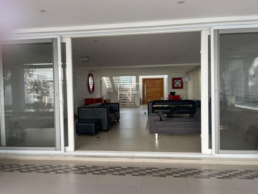 Living, sala de jantar, cozinha com  ilha, despensa e lavabo.