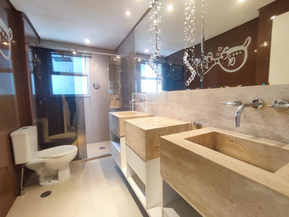 Apartamento com fino acabamento e bom gosto, com 156 m², andar alto, elevador privativo com biometria, 3 suítes, lavabo, sala de tv e jantar, cozinha totalmente planejada com ilha central, lavanderia, deliciosa varanda gourmet com churrasqueira, e 2 vagas de garagem cobertas.