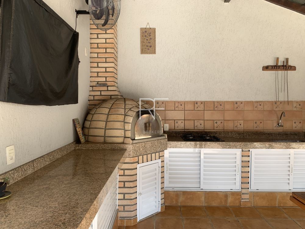 Área gourmet com churrasqueira, forno de pizza.
