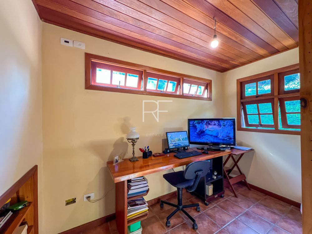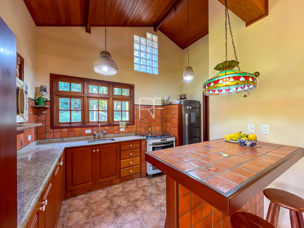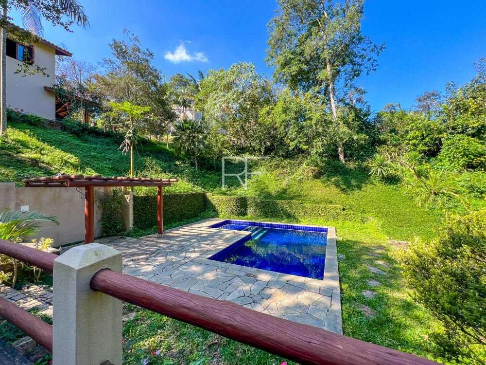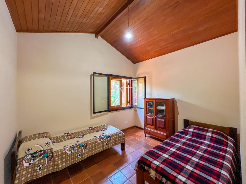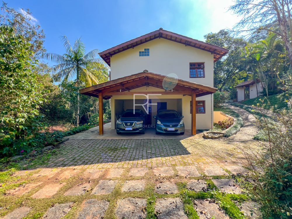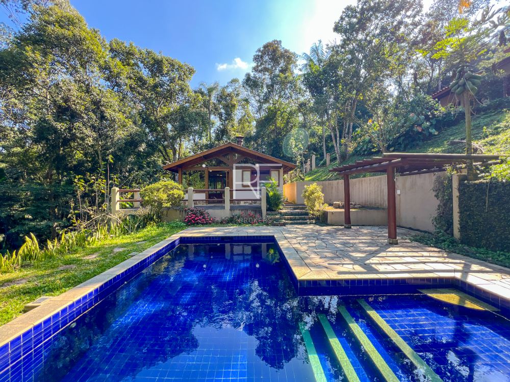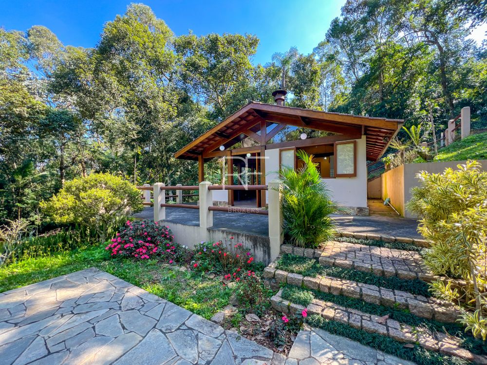 Esta casa a venda na Granja Vianna fica em um condomínio seguro com portaria 24 horas, casa com 260 m2 de construção em um terreno de 2.870 m2. Construída em 2005 e ampliada em 2012, tendo sido feitas benfeitorias em 2022 (pintura externa e envernizamento de todo o madeiramento, incluindo portas e janelas).