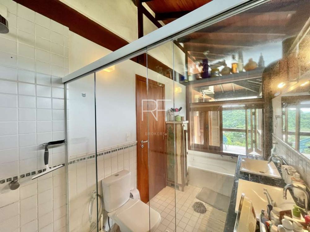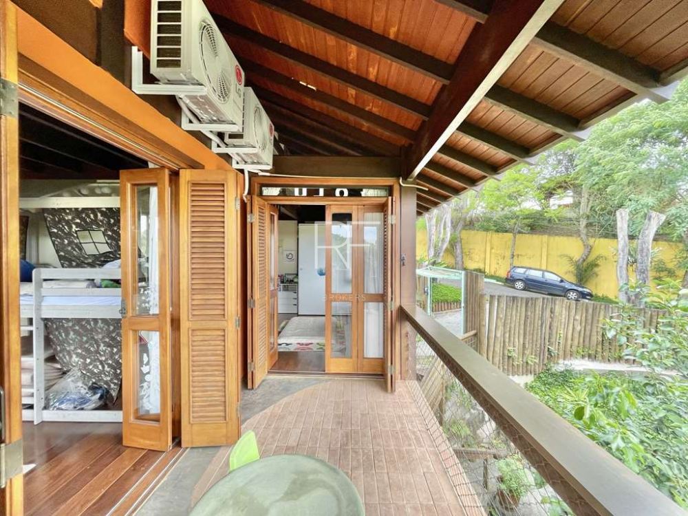 Portas e janelas em madeira Jequitibá Rosa e vidro, com venezianas nos quartos.