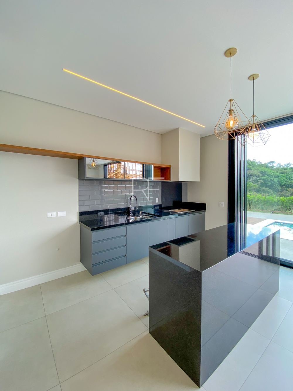 Excelente casa semi térrea, nova (nunca habitada) com fino acabamento, estilo contemporâneo com ambientes amplos e integrados, em declive com linda vista para a mata.