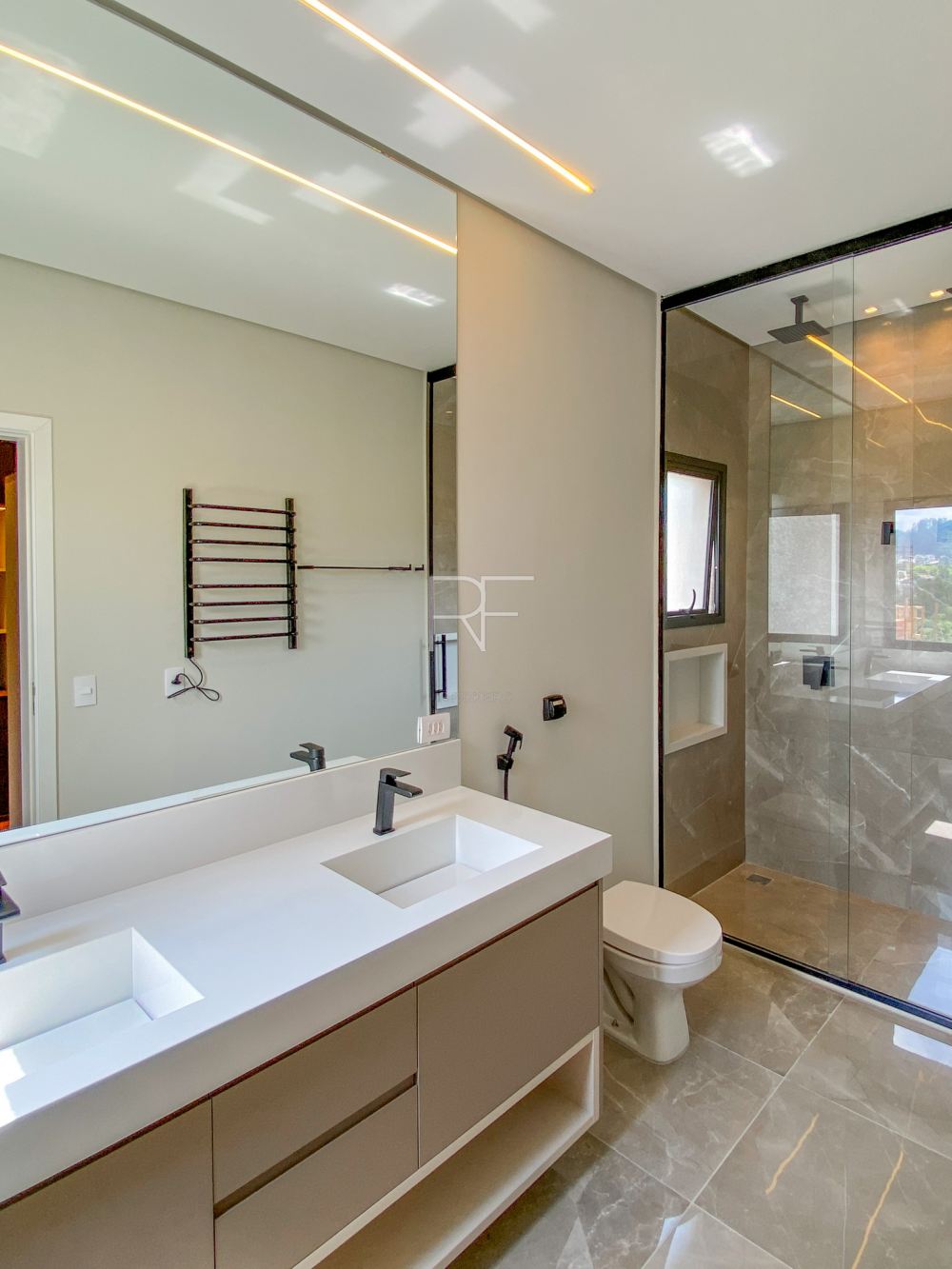 . Suíte master: Com vista para mata, sacada coberta e privativa, closet e banho com pias e chuveiros duplos (também com vista para mata)