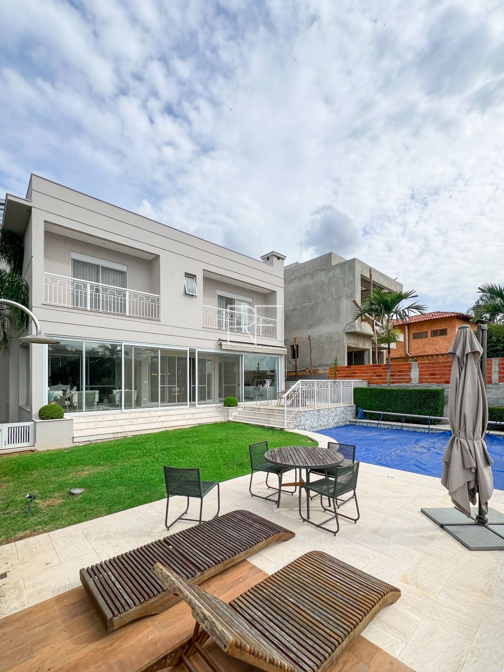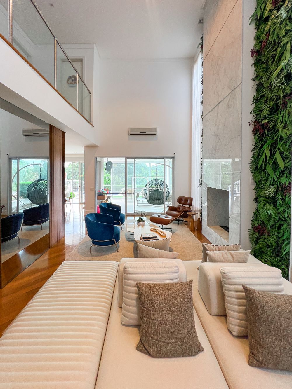 Living com pé direito duplo com Lareira, Adega, totalmente integrado com área de lazer com espaço gourmet , piscina com trocador de calor, Spa, sauna
