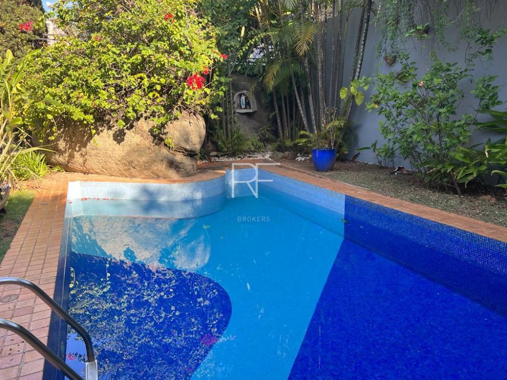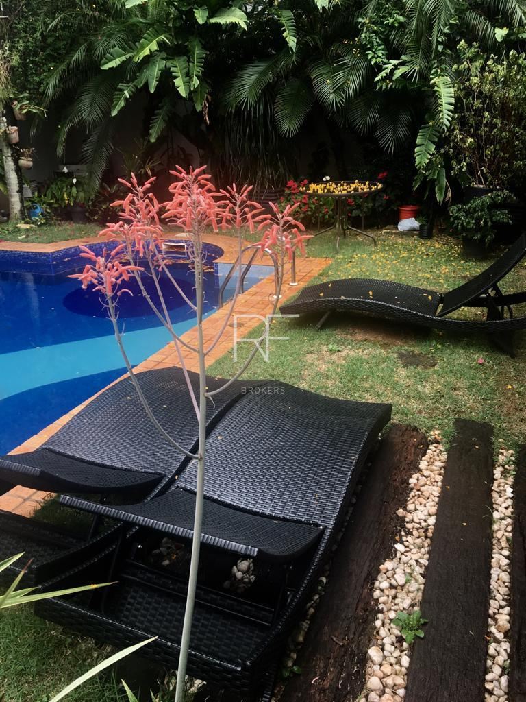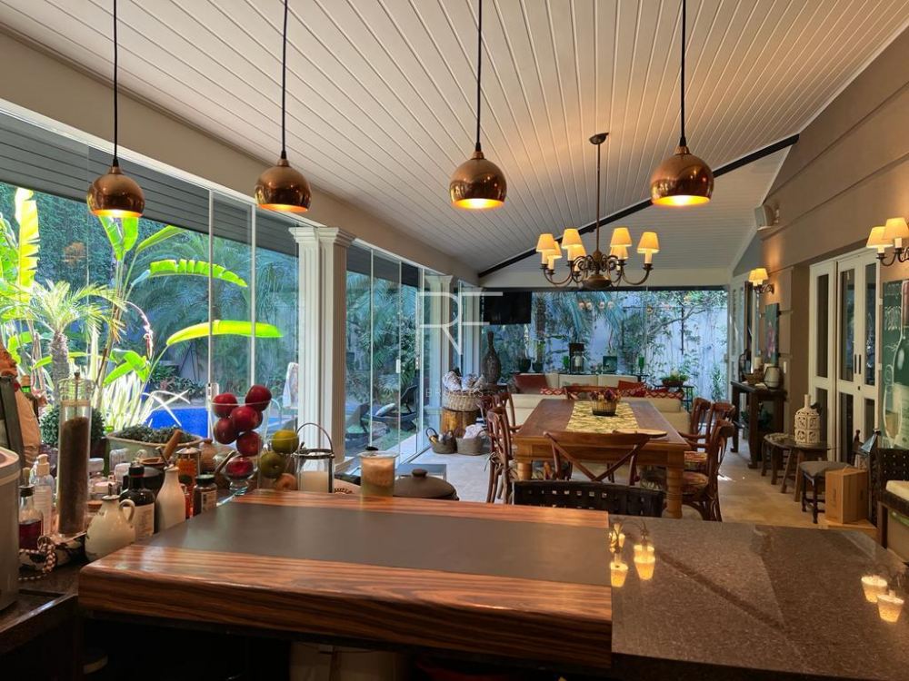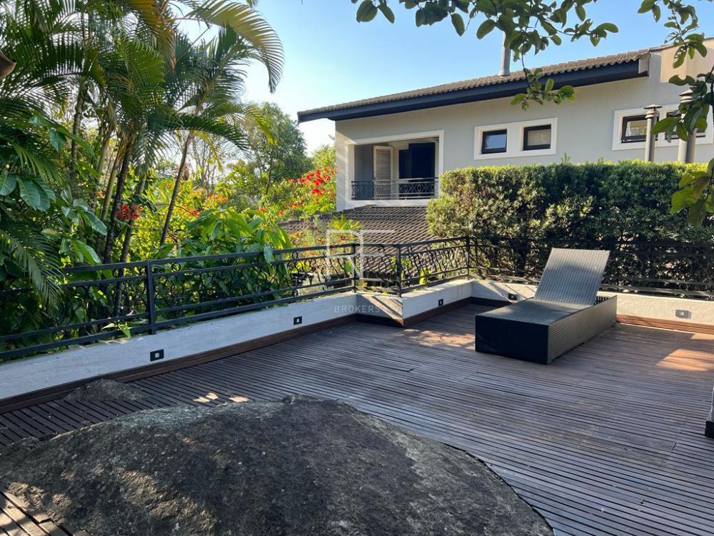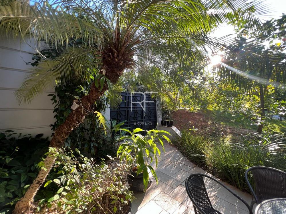 Generosa área gourmet com churrasqueira, forno de pizza e cooktop, o deck próximo a piscina e envolto a uma rocha natural , sauna e um amplo jardim para completar o lazer. Paisagismo completo. Garagem coberta.