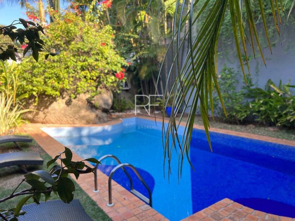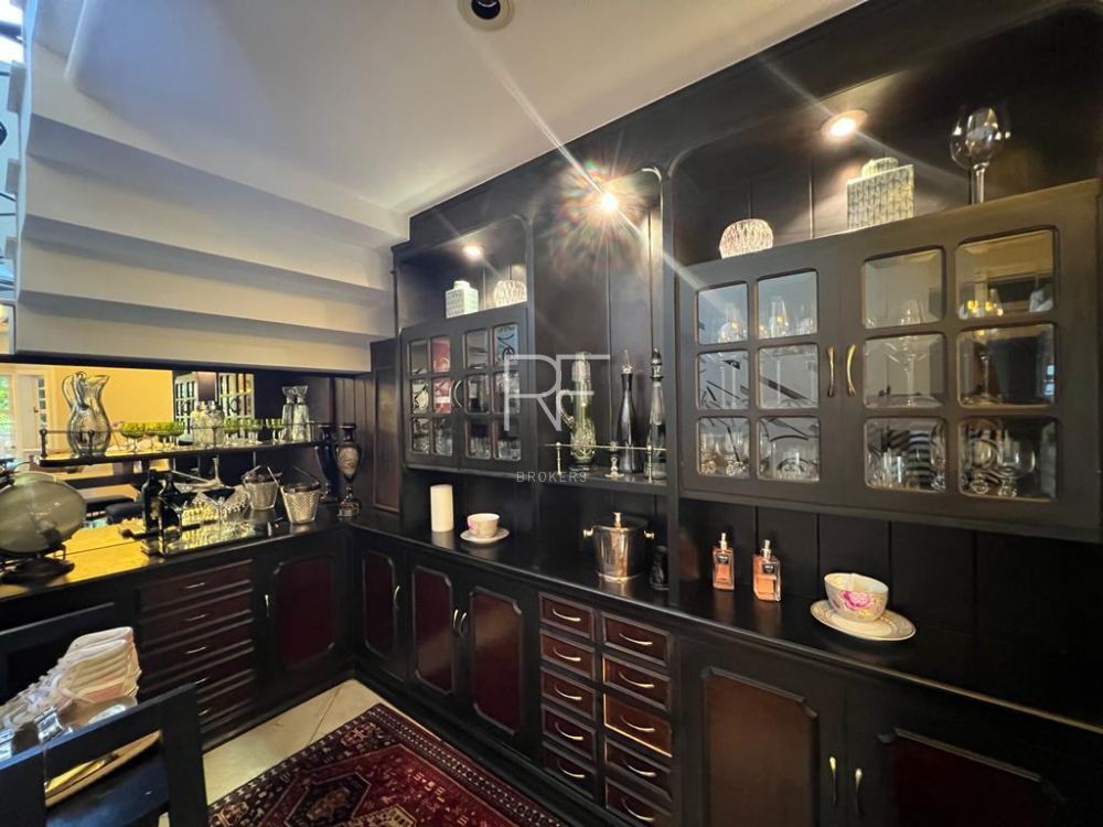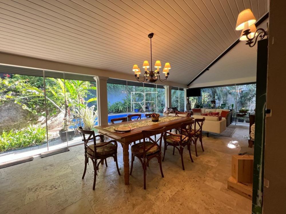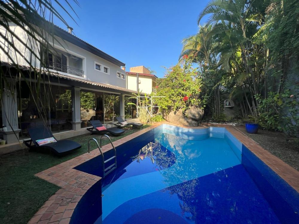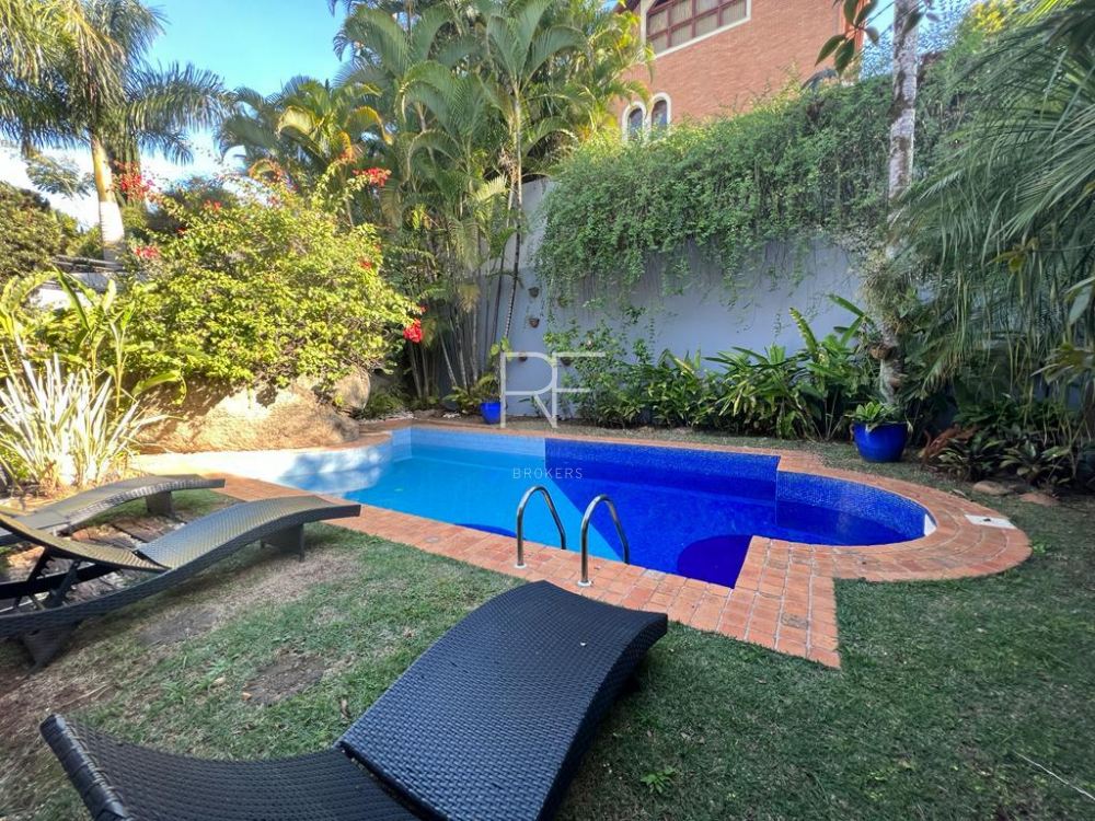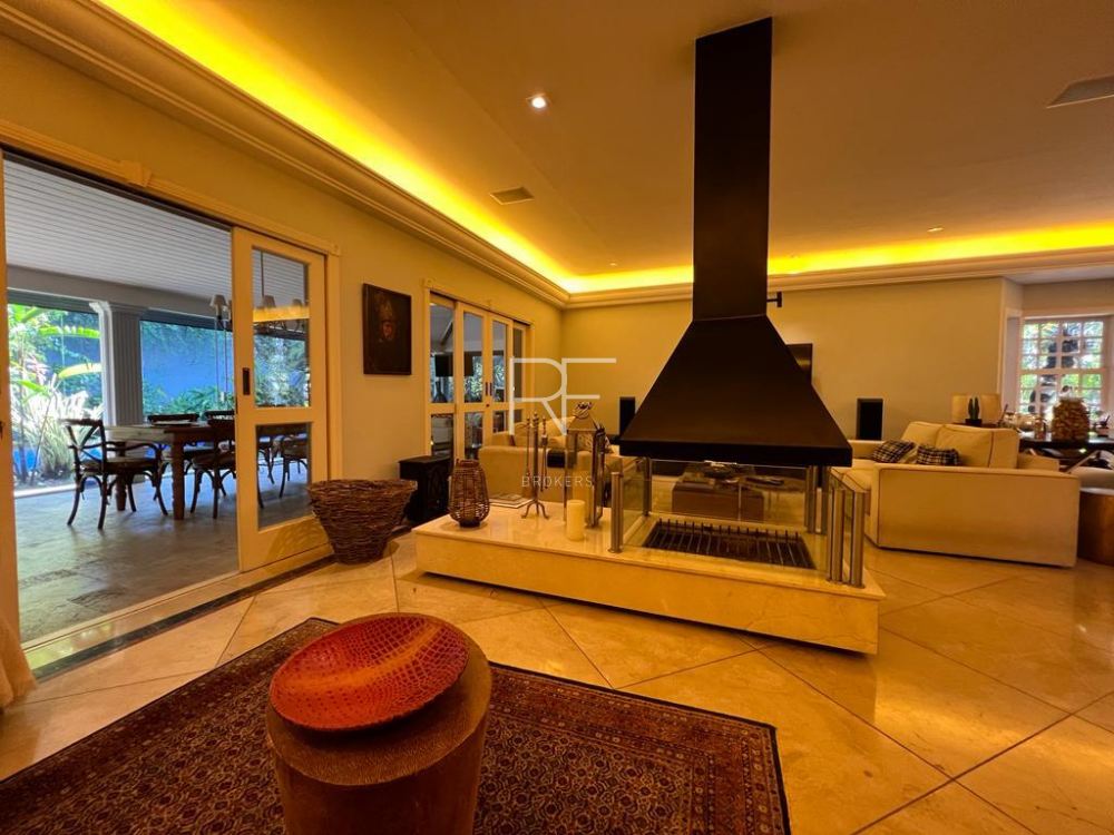 Generosa área gourmet com churrasqueira, forno de pizza e cooktop, o deck próximo a piscina e envolto a uma rocha natural , sauna e um amplo jardim para completar o lazer. Paisagismo completo. Garagem coberta.