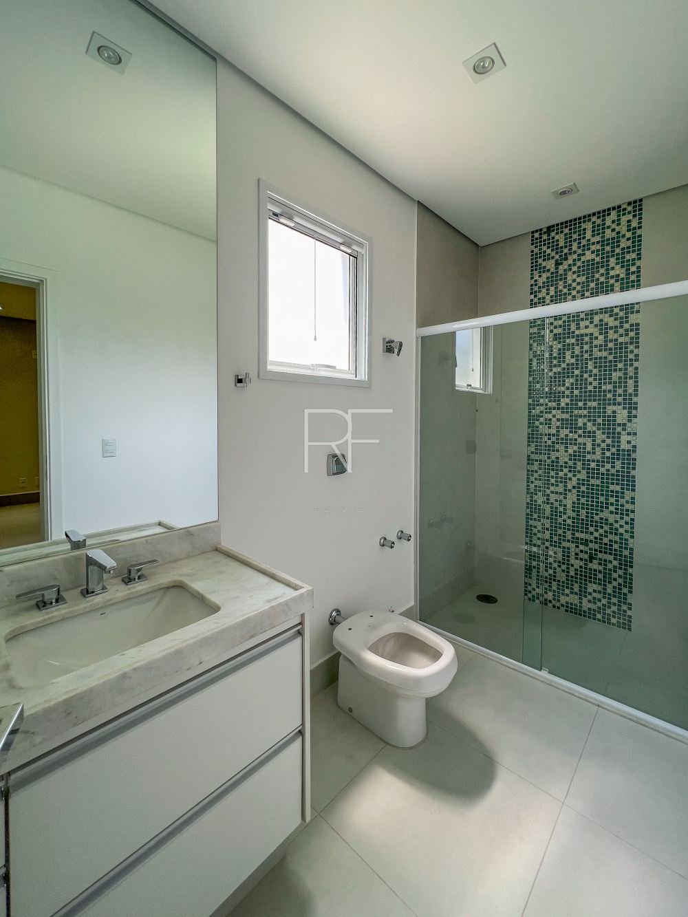 04 amplas suítes sendo 01 no piso térreo com closet e ar condicionado.