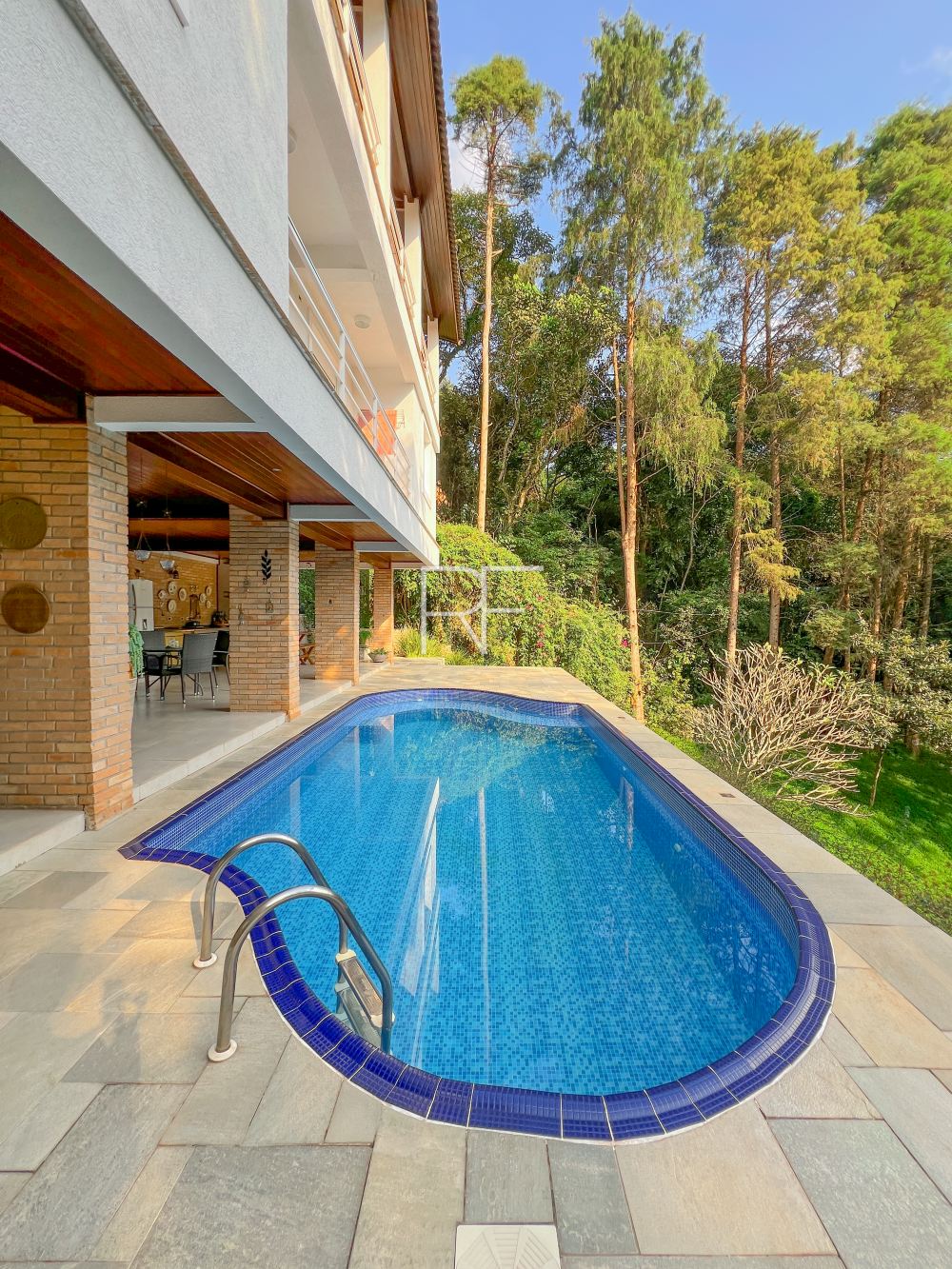 Piscina com iluminação.