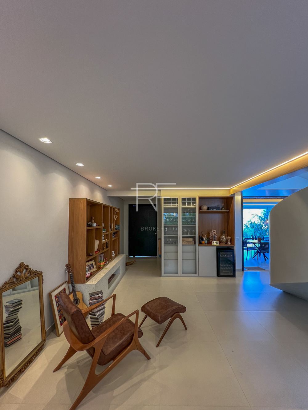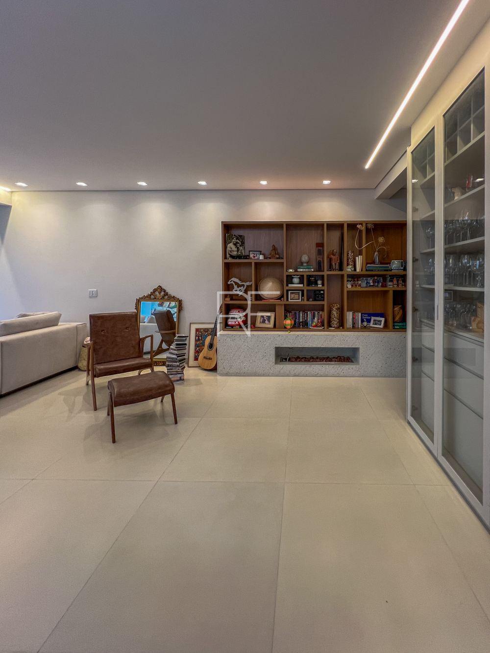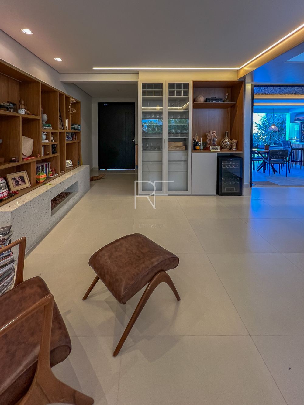 Living amplo com lareira e adega, totalmente integrado com o lazer e a área gourmet, com ilha , churrasqueira, chapa , Cooktop , chopeira e lavabo,