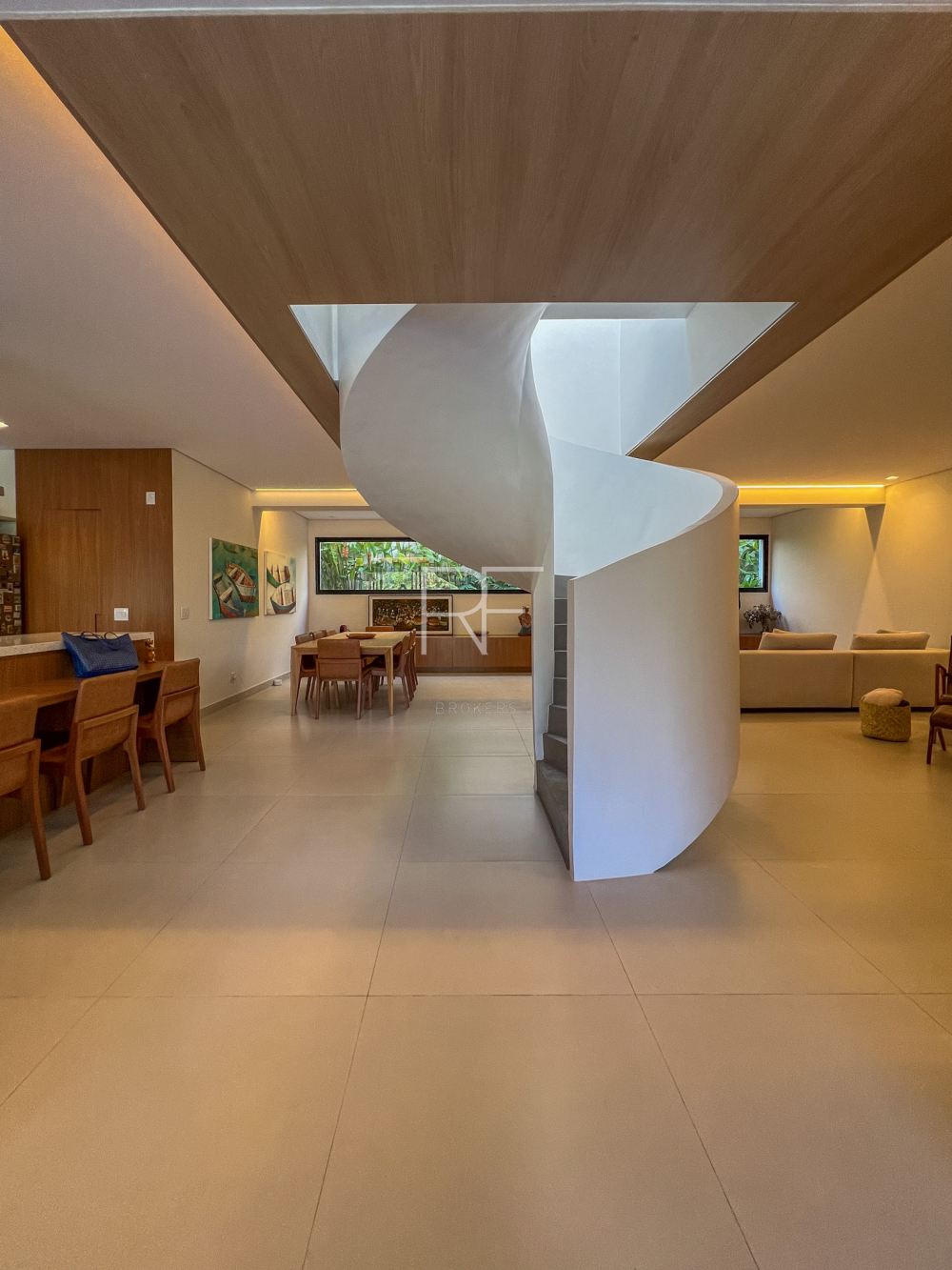 A escada helicoidal faz parte da arquitetura, trazendo charme e elegância ao imóvel