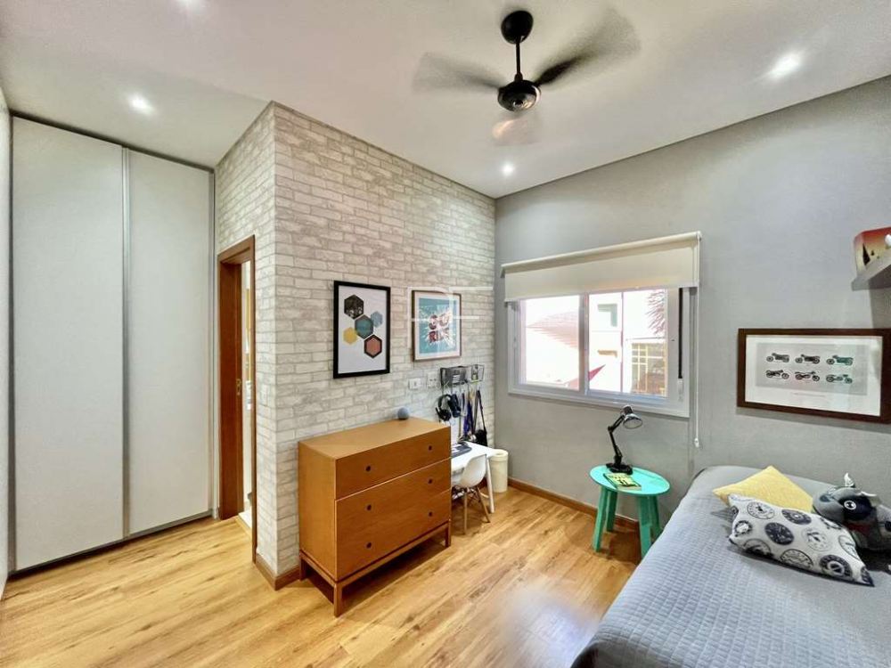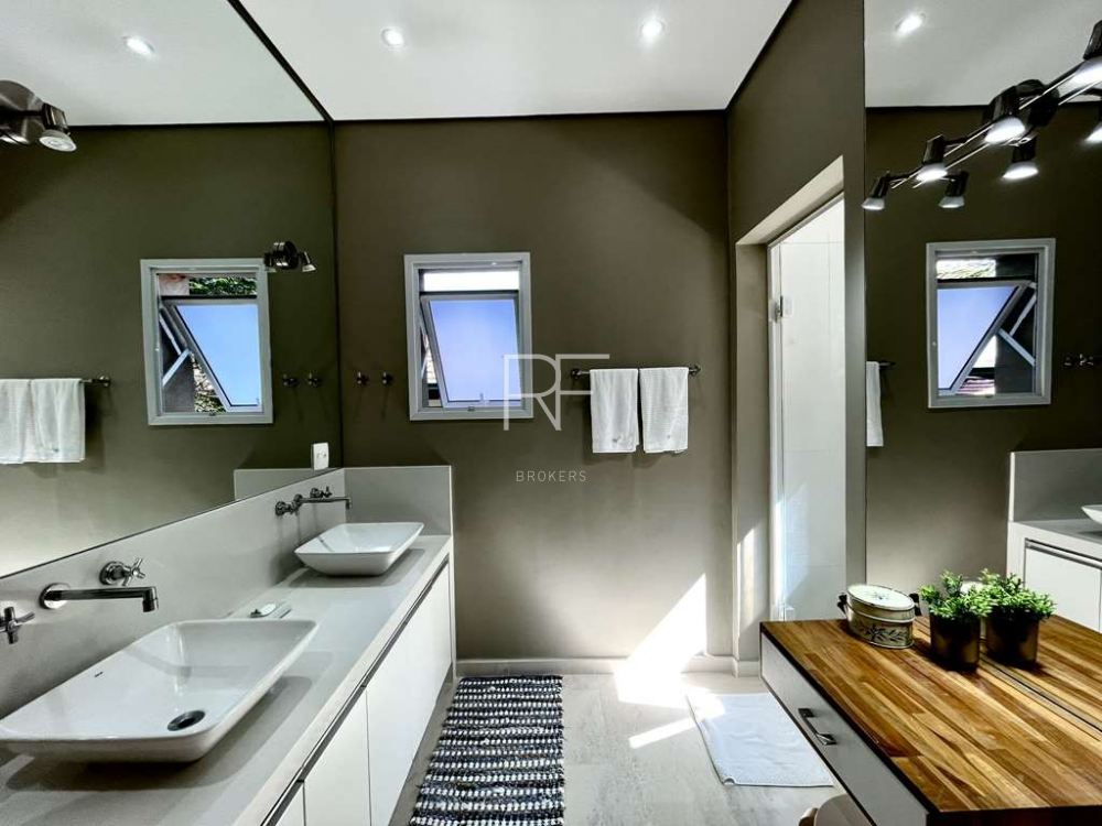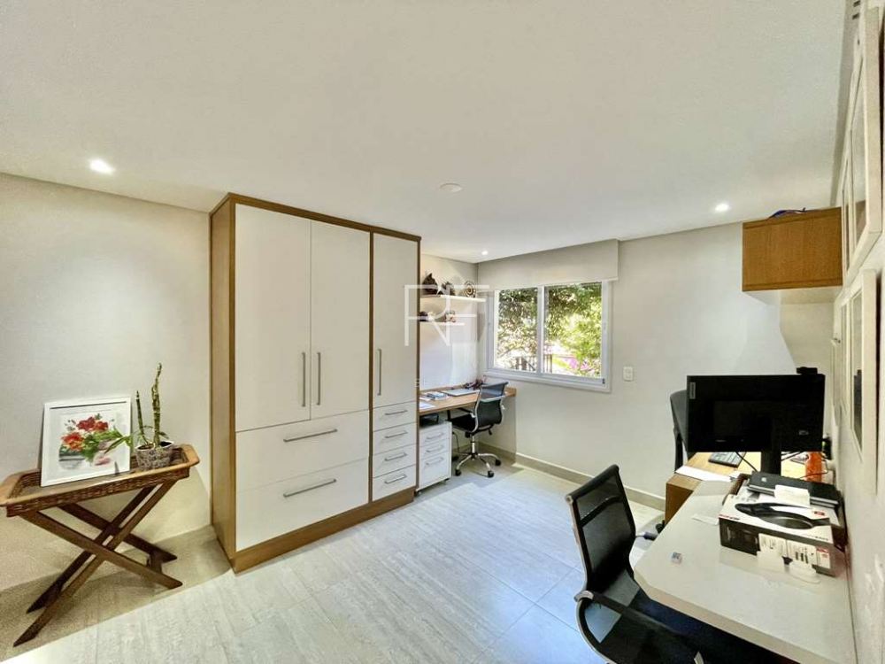 4 suítes com armários, sendo 3 stes na área íntima e 1 ste na área de hospedes. A master com closet sr e sra, ar condicionado Q e F.