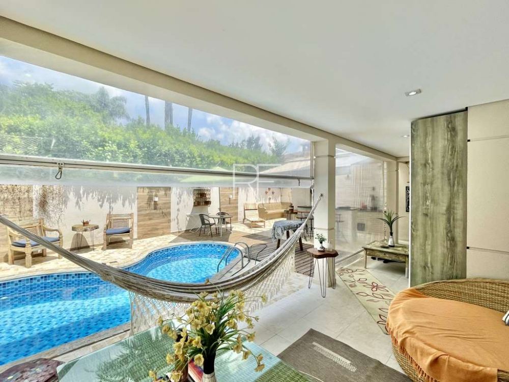 Living para 5 ambientes voltados para varanda e quintal com lazer.