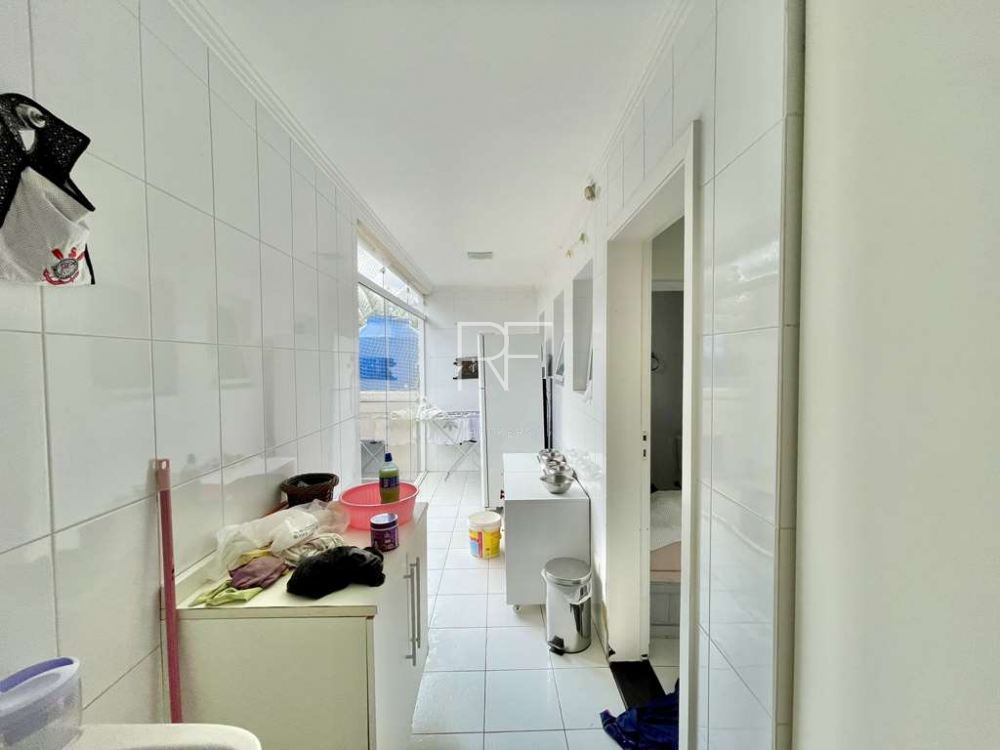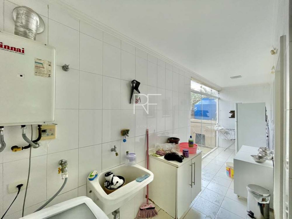 Área de serviço aberta ensolarada e lavanderia fechada com tanque, armários e suíte de serviço.