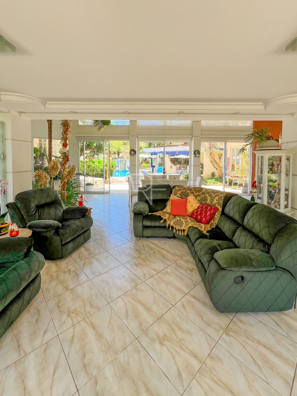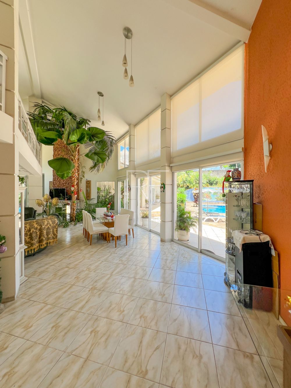Esta ampla casa em terreno de 1.947 m², se destaca pela perfeita integração com o verde, oferecendo um grande jardim que cria um ambiente tranquilo e natural. Com 4 suítes, todas equipadas com closets e duas com banheiras de hidromassagem, a residência foi projetada para proporcionar um estilo de vida confortável e sofisticado.