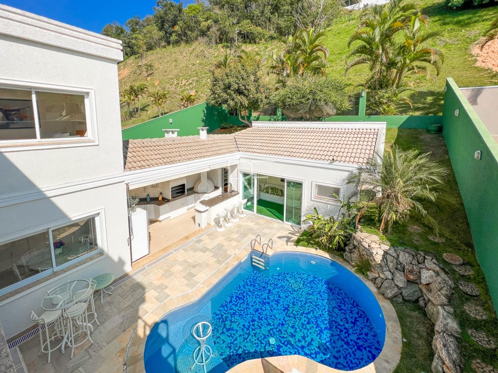 Área gourmet com forno de pizza e churrasqueira, sala para musculação com banheiro ou apoio para a piscina aquecida, com cascata, chuveiro e apoio/bar, toldos, deck, varanda coberta, pomar, jardim, canil, área de lazer, espaço para animais de estimação, garagem coberta para 5 carros e mais 2 vagas descobertas. Piscina com uma belíssima vista!
