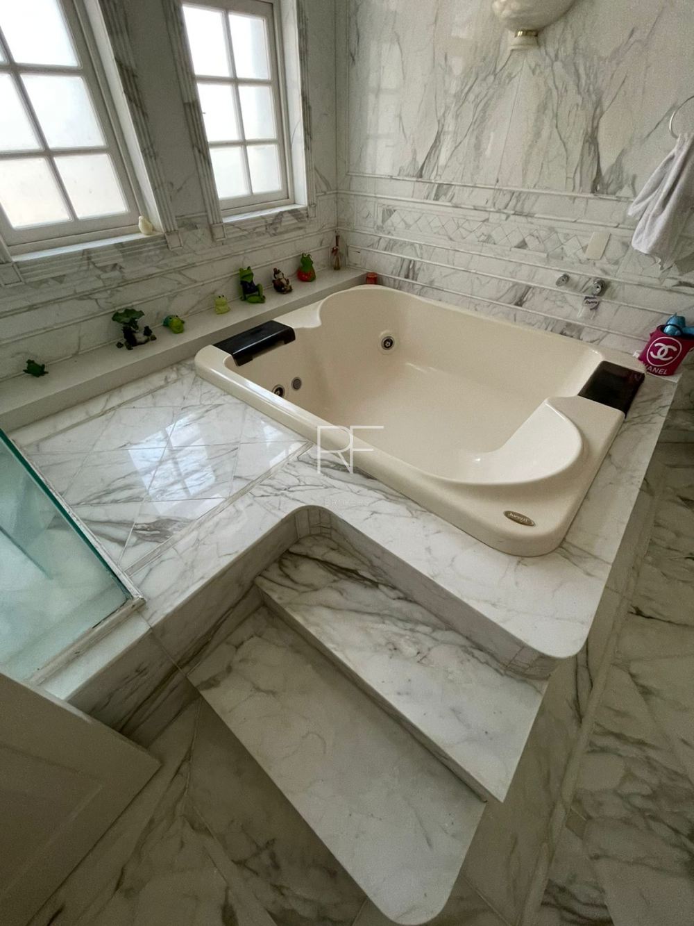 A residência possui 5 suítes, mais 2 dormitórios de empregada,