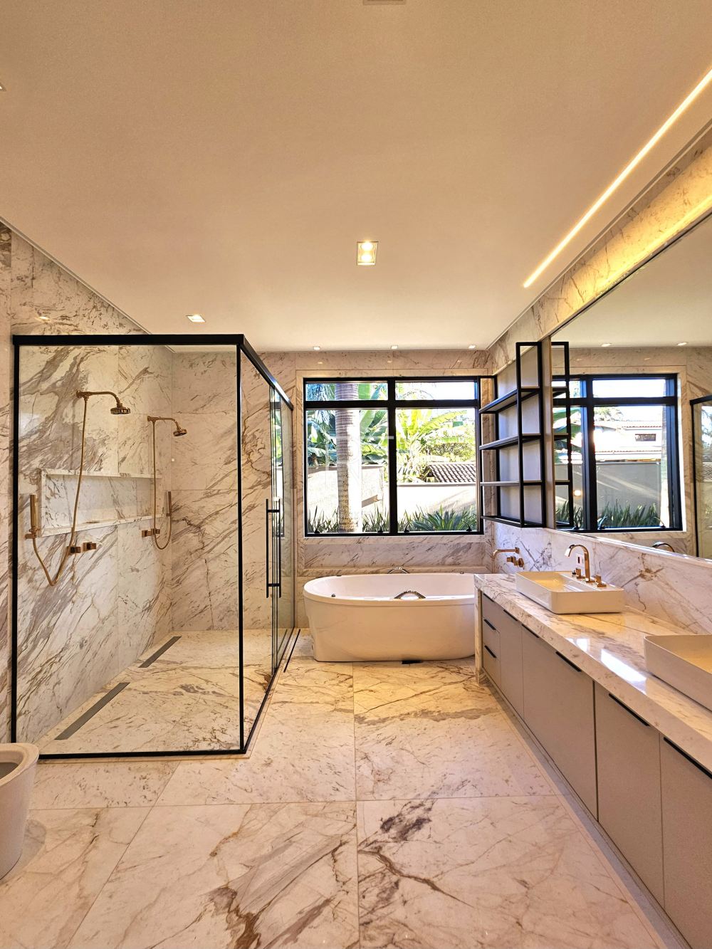 05 amplas suítes na parte térrea, todas com acesso ao jardim