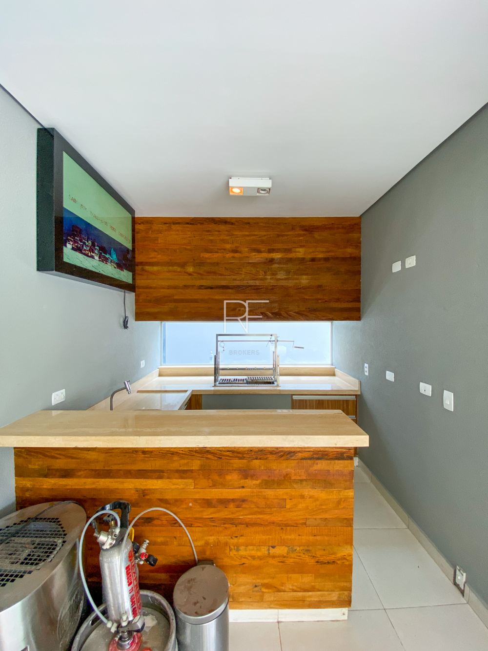 Área Gourmet com churrasqueira e salão fechado com vidros