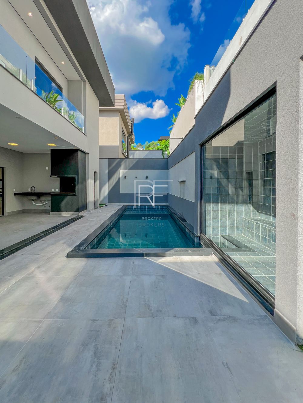 Piscina com prainha integrada com Sauna a vapor (Úmida). Casa 100% iluminada em LED (áreas internas e externas)