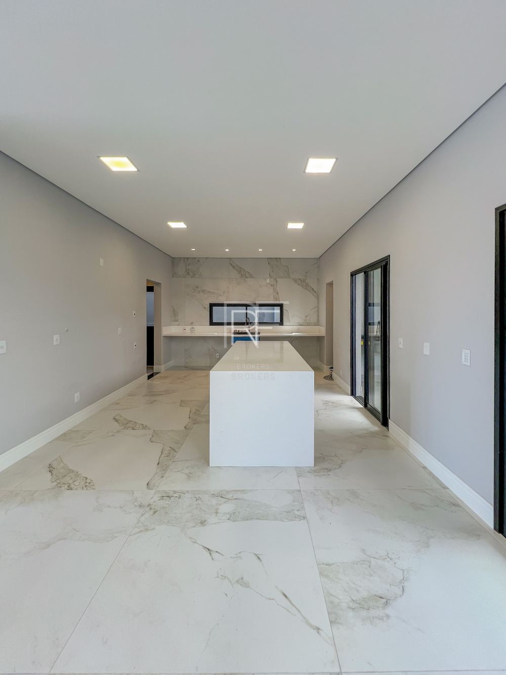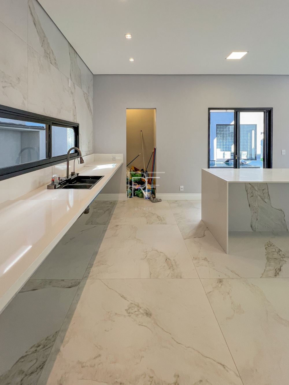 No pavimento térreo as Salas de Estar e Jantar são integradas com Cozinha Americana com ilha quente e espaço gourmet.