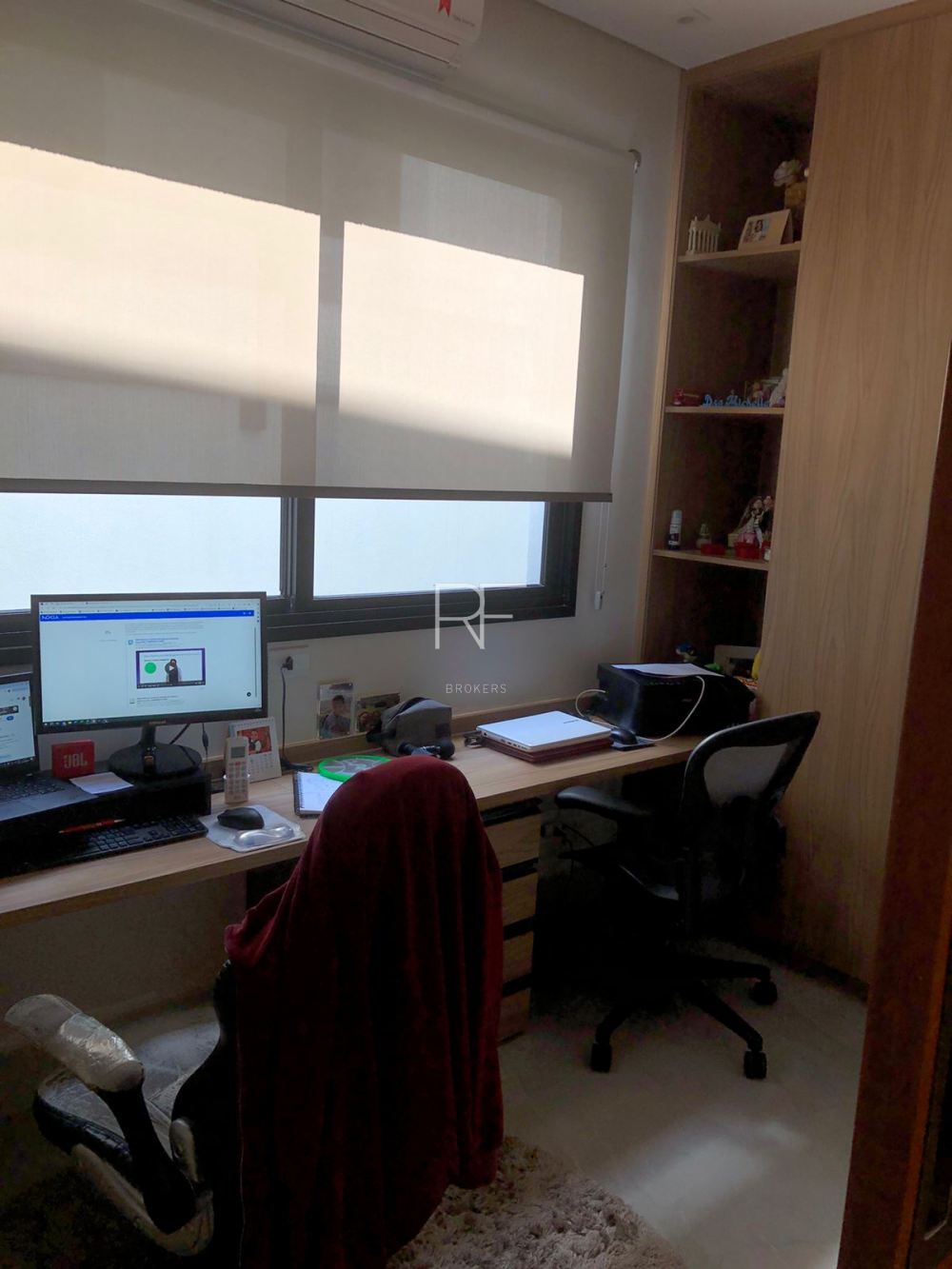 Sala de TV climatizada e sistema de som.