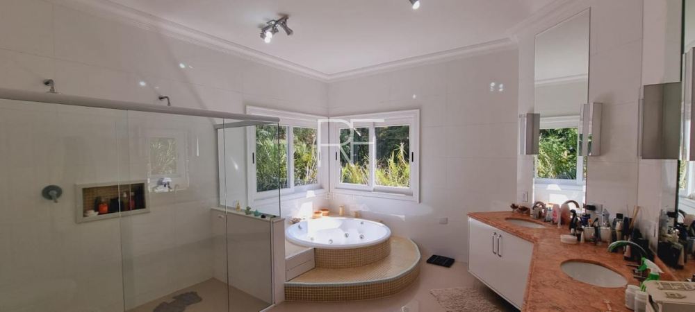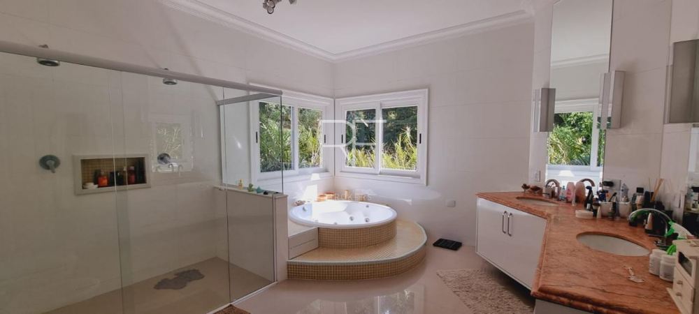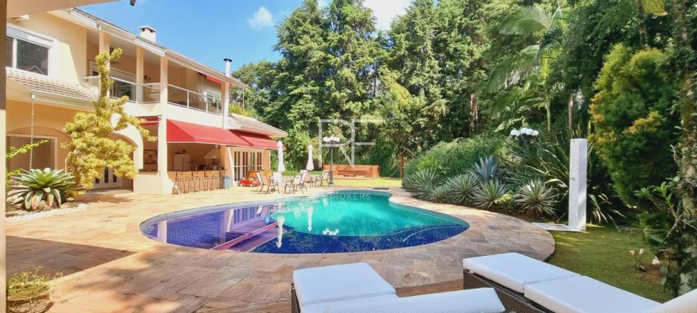Com 5 Suítes, sendo a master tem closet e hidro. Living para 2 ambientes, sala de jantar, cozinha, lavabo, espaço gourmet, sauna, academia, piscina, pomar, fogo de chão. Grande área verde, e paisagismo de muito bom gosto.