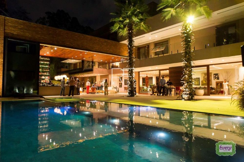 A área externa é um verdadeiro retiro com uma piscina, complementada por um SPA, palco, chuveiro, vestiário e uma convidativa sauna úmida. A propriedade é circundada por um sistema de irrigação automática, cuidando dos jardins com precisão. Ainda, destaca-se um ambiente subterrâneo reservado para entretenimento ou armazenamento de vinhos. A residência é finalizada com um sistema de ar condicionado dutado, iluminação LED, escritório equipado, sala de T.I., amplas dependências de serviço e uma garagem espaçosa para 18 carros, consolidando seu status como um marco de sofisticação e funcionalidade