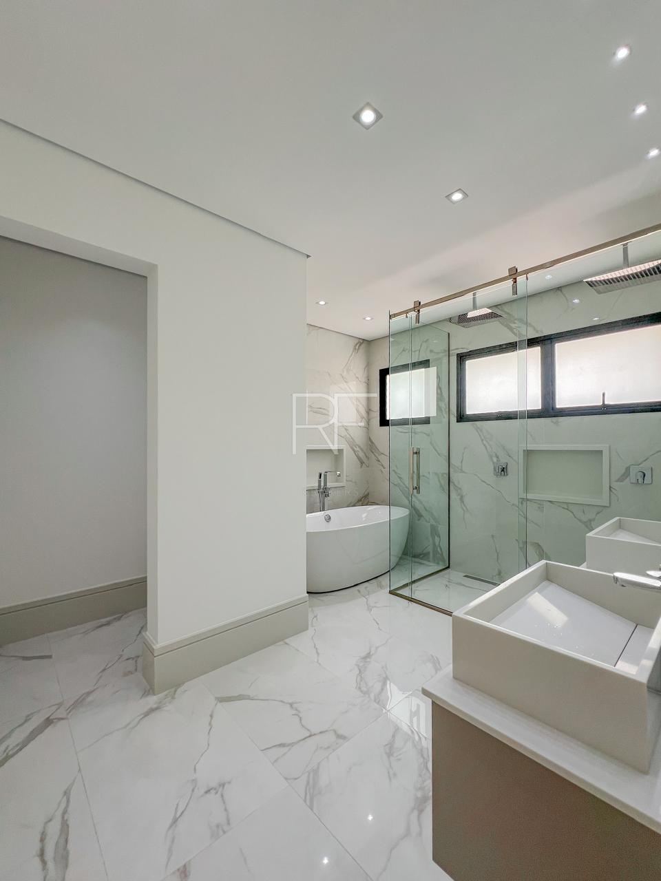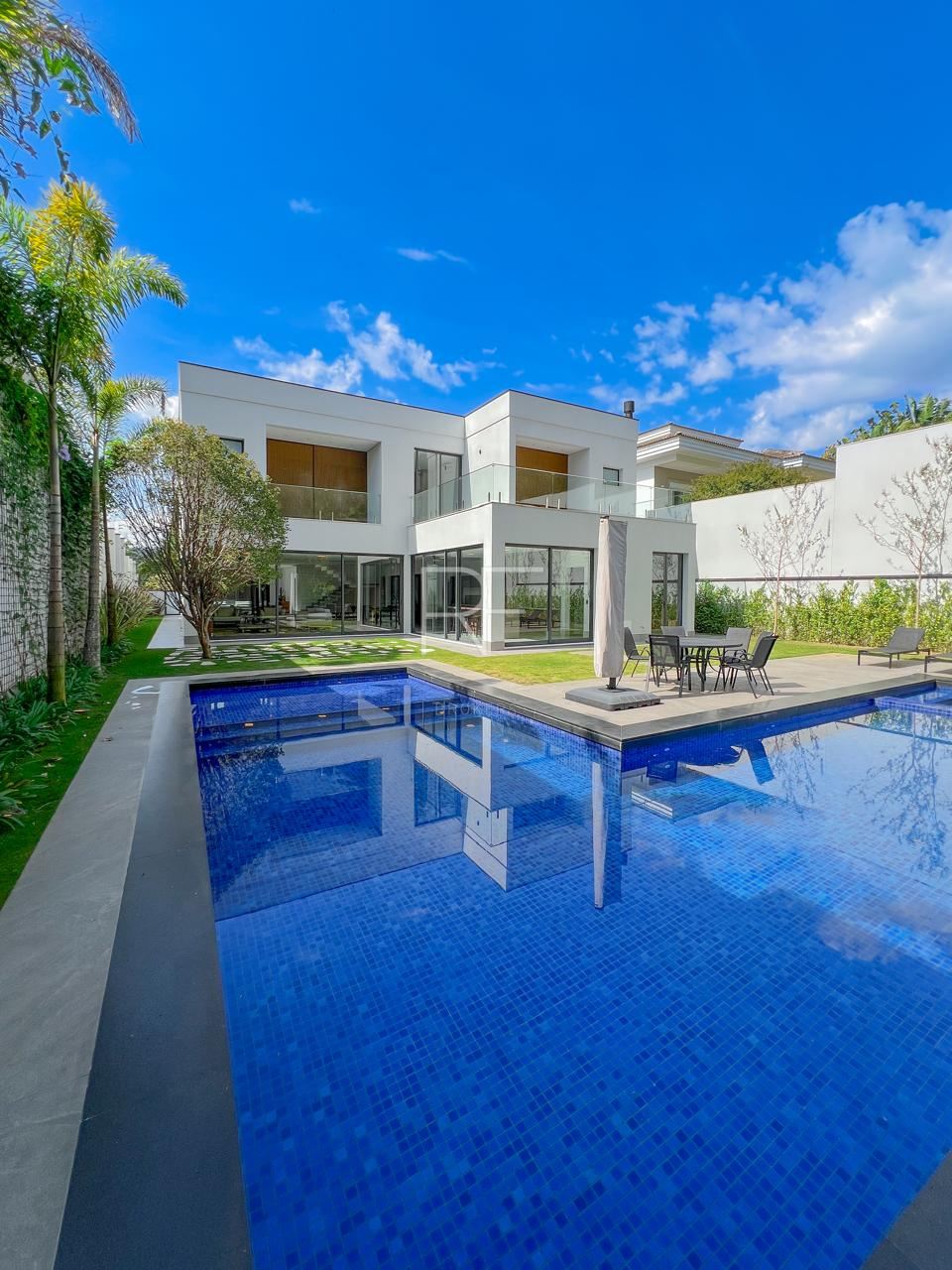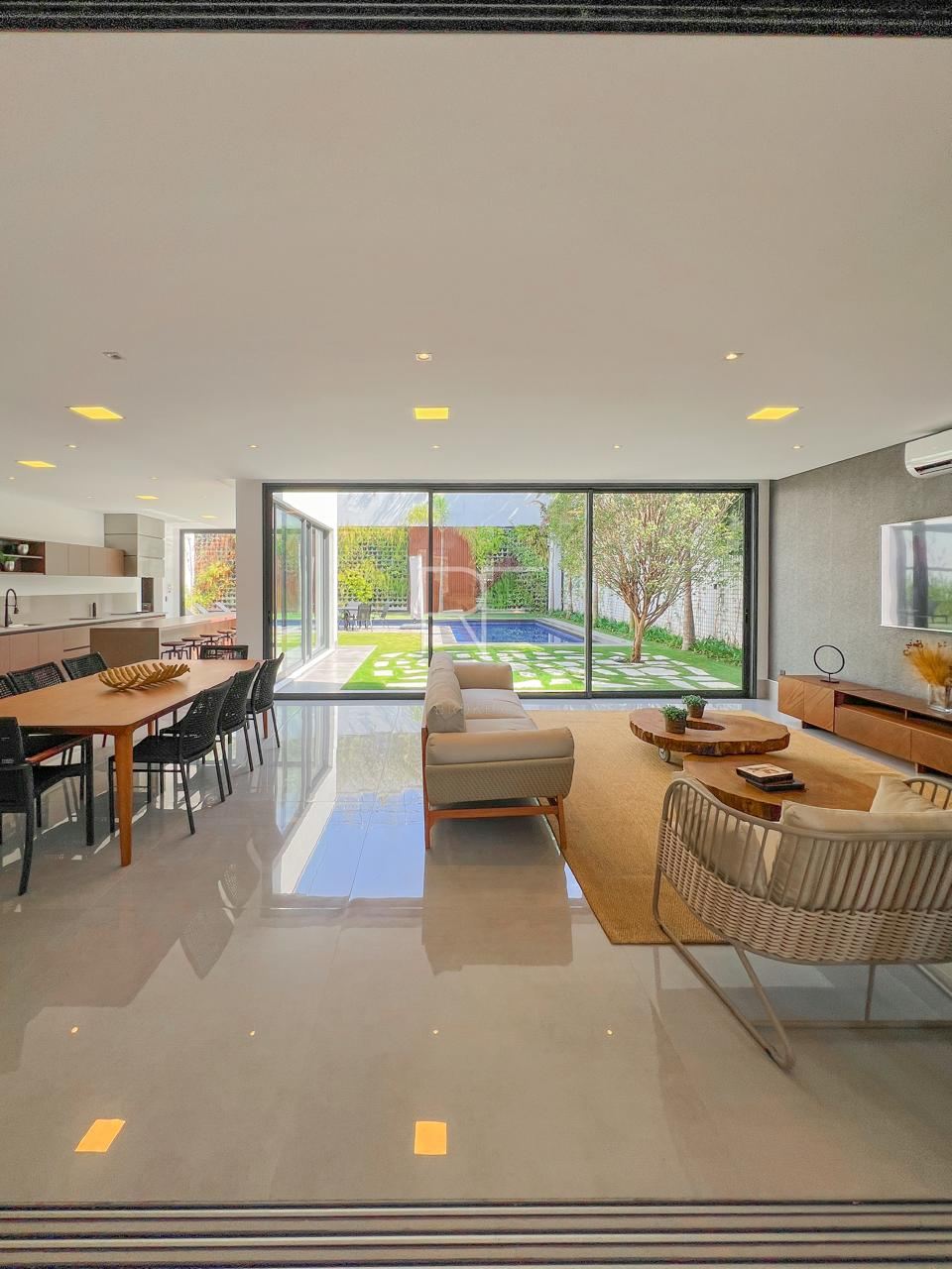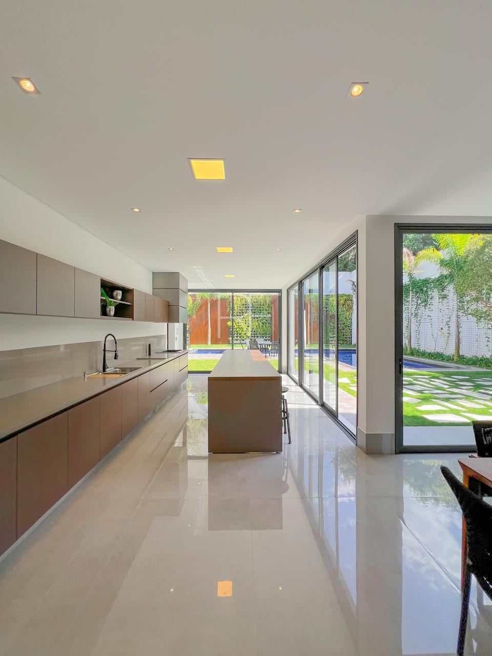 Residência nova com arquitetura moderna, contendo 5 suítes (todas com closets), mais living para 3 ambientes com pé direito duplo, amplo Espaço Gourmet integrado.