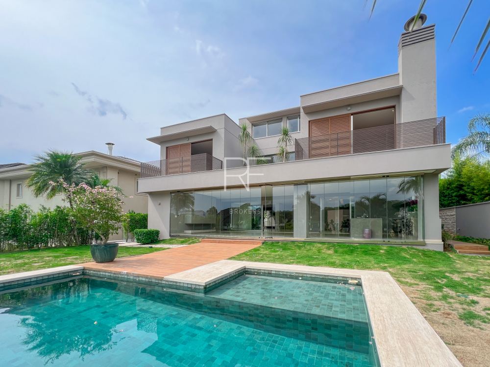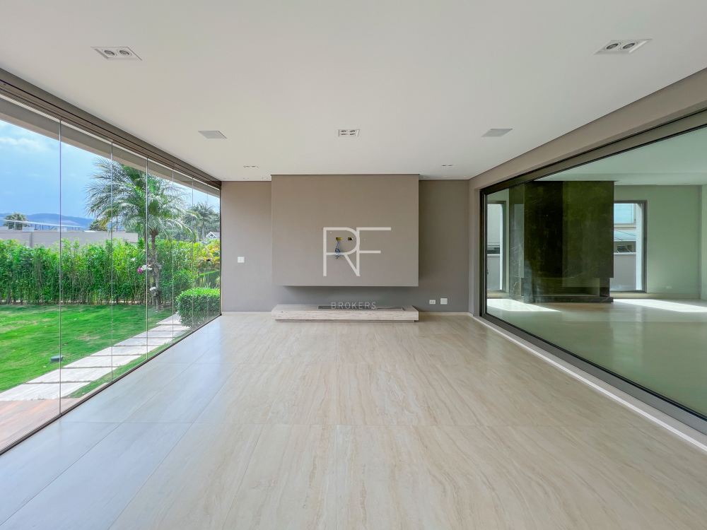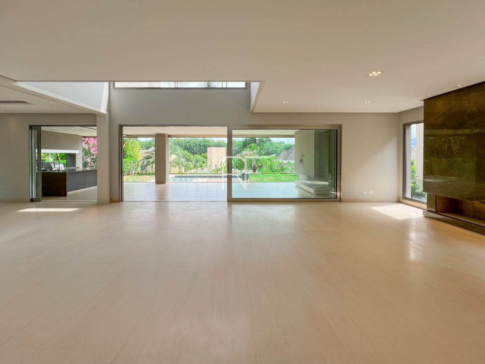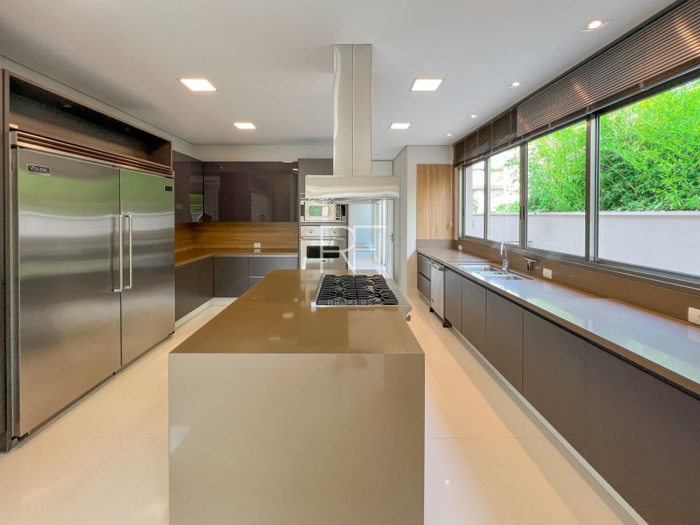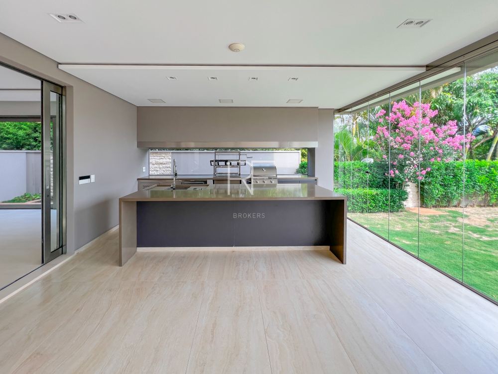 Living amplo e totalmente integrado ao lazer, 5 suítes, sótão e escritório. Cozinha equipada e com copa.