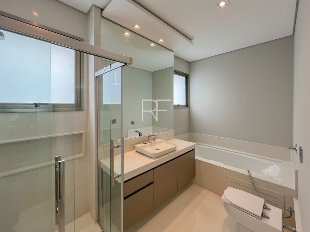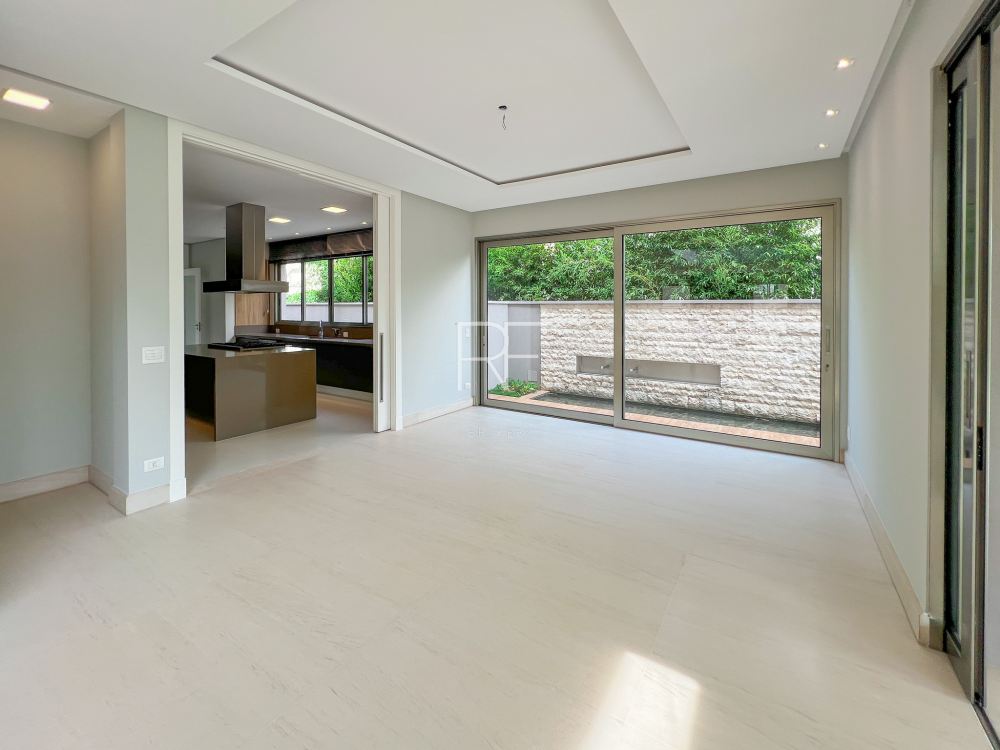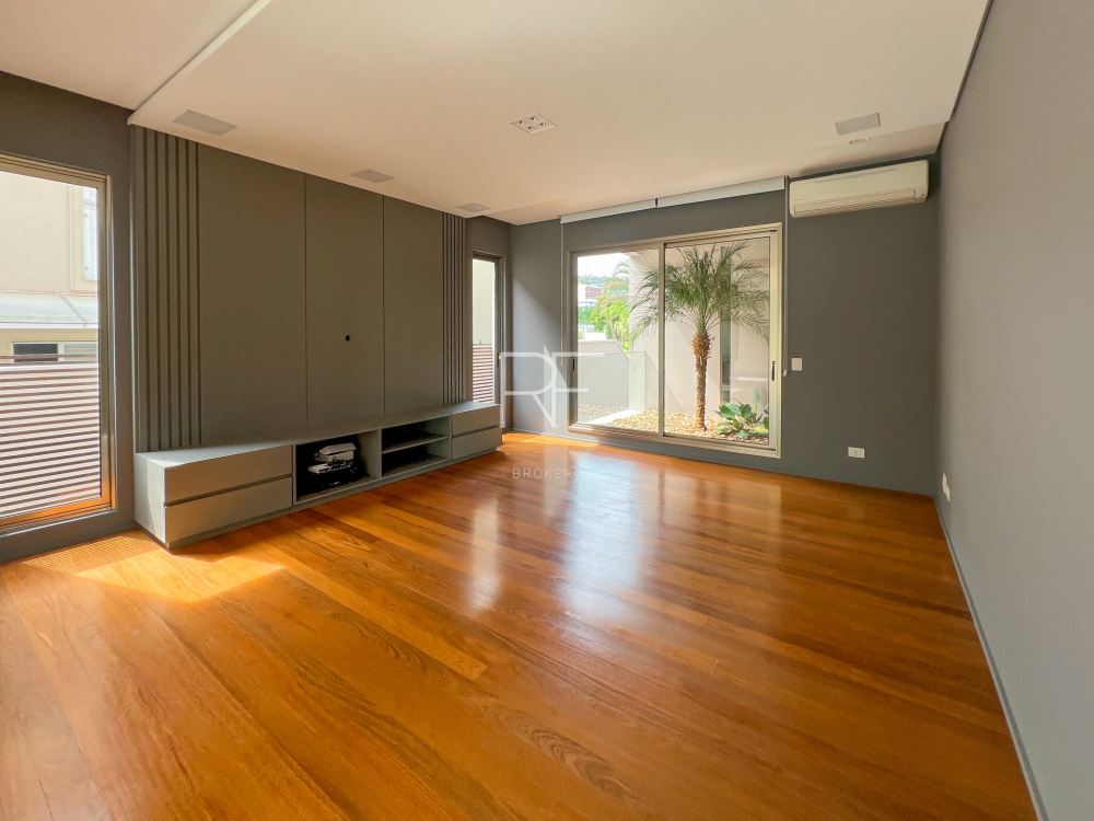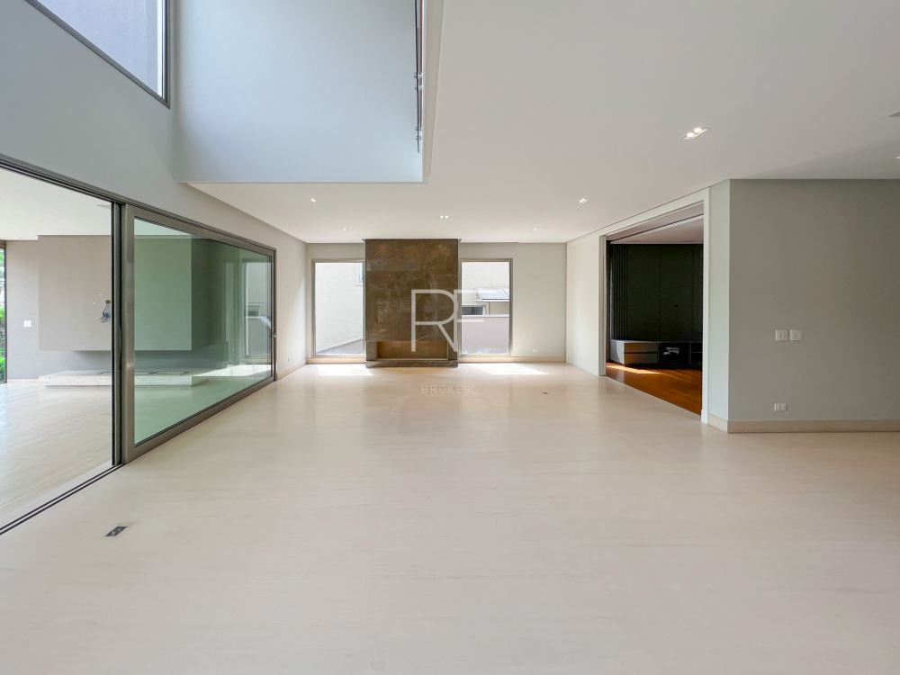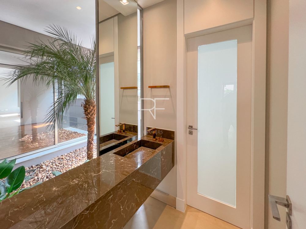 Living amplo e totalmente integrado ao lazer, 5 suítes, sótão e escritório. Cozinha equipada e com copa.