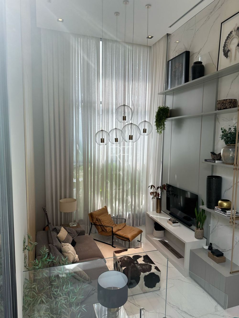 -Lazer com churrasqueira, piscina, Sauna e Deck com sofá e poltronas integrados;
