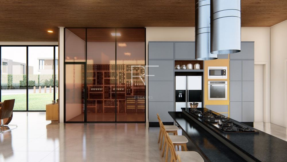 Conta com 06 suítes, 02 escritórios, adega integrada com a sala de jantar, cozinha, lavabo, lavanderia, sala de cinema.
