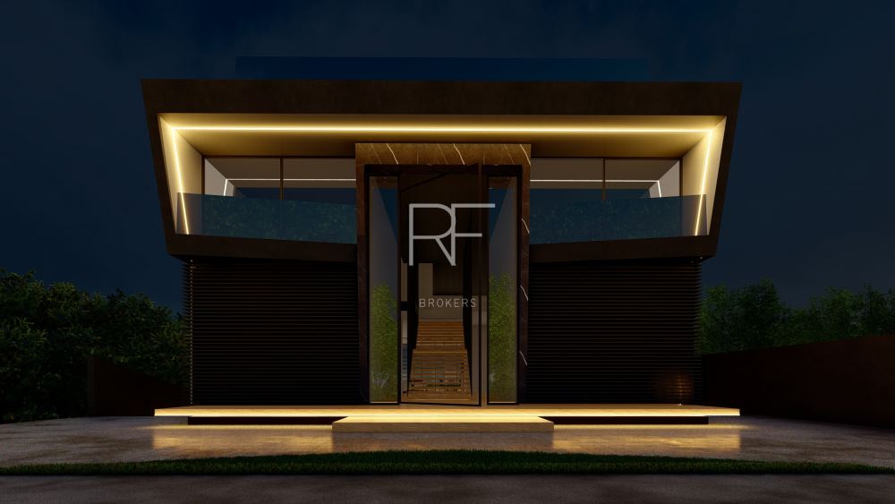 O projeto foi pensado de maneira que desse imponência e ao mesmo tempo leveza e sofisticação. Na fachada temos essa sutil inclinação da estrutura. No acesso da casa, temos um pé direito duplo que contempla uma escada monumental, que é um marco, trazendo assim uma forma simétrica para a casa.