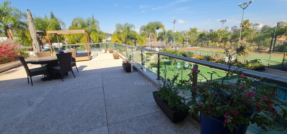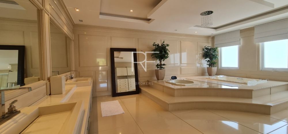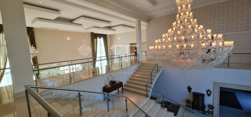 Hall da escada com espelhos d?agua e elevador panorâmico, mezanino para acesso a área privativa, sendo 6 suítes, uma delas exuberante com dois closets, varanda privativa e vista privilegiada para a Alphaville/Tamboré.