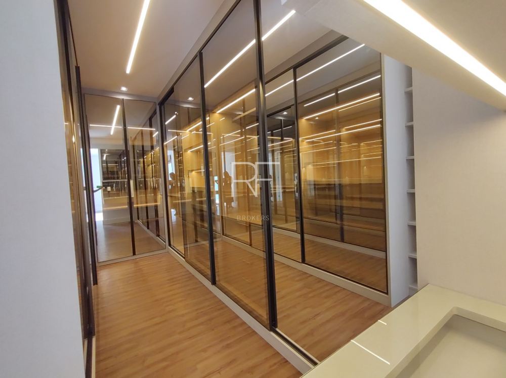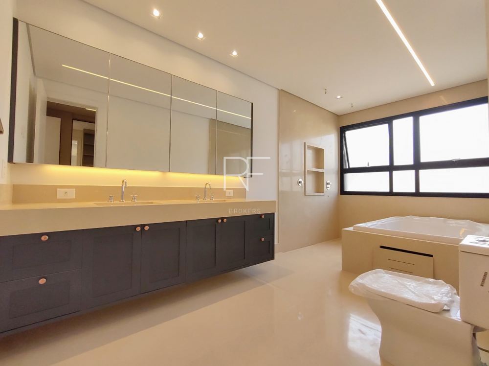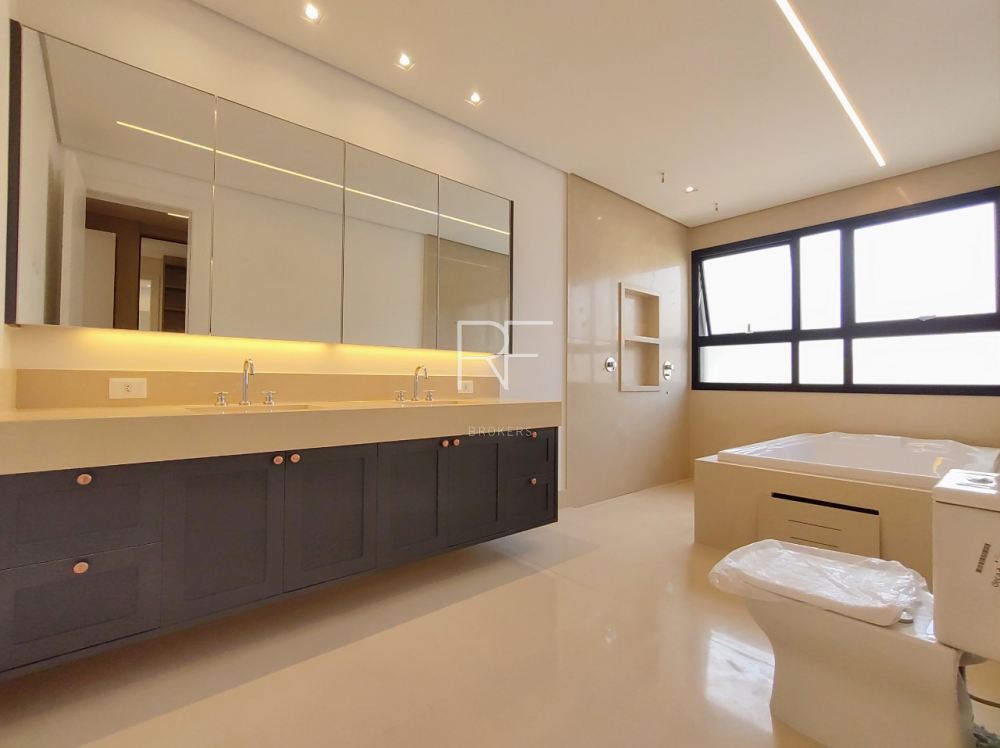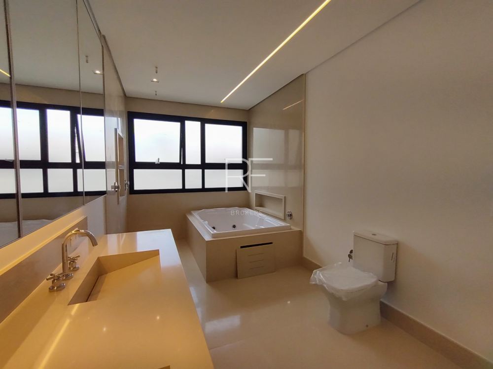 06 suítes amplas, sendo a master com um closet, sacada com vista para piscina; banheiro Sra. e Sra
