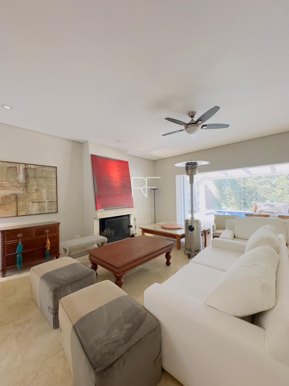 Sala de estar, jantar e lareira